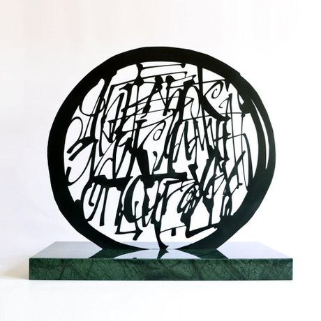 - Postavka je podeljena u dve prostorije i dve logične celine – jednom dominira sprej, a druga je nastala kao sudar pera i akvarela. Da bi sve bilo još razigranije, te opipljivije, pored radova na papiru, kartonu, platnu, drvetu… tu su i dve skulpture. Izvukao je azbuku i Džamutku u prostor i dao im treću dimenziju.