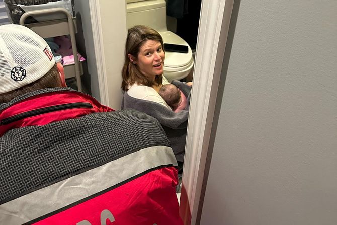 Objavila je fotografiju gde sedi na podu toaleta sa novorođenčetom u naručju dok su ekipe hitne pomoći ulazile u stan. Takođe je podelila i fotografije iz bolnice Sibli u Vašingtonu, gde ona i suprug grle novorođenu Grej i gde je upoznaju sa njenim starijim bratom.