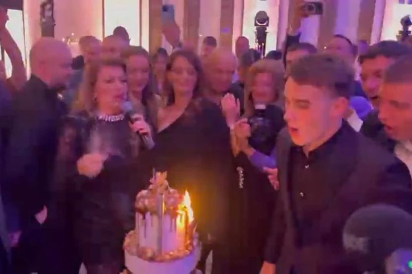 Međutim, najlepši momenat žurke usledio je kada je slavljenik oduvao svećice na raskošnoj torti na četiri sprata, ukrašenoj zlatnim detaljima i njegovim imenom.