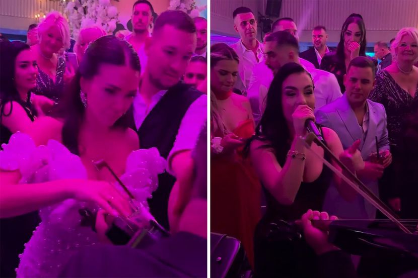 Otpevala je čuvenu "Večeru" a mladenci su sve vreme bili na nogama i plesali. U jednom trenutku krenuli su da kite muzičare koji su veselo svirali.