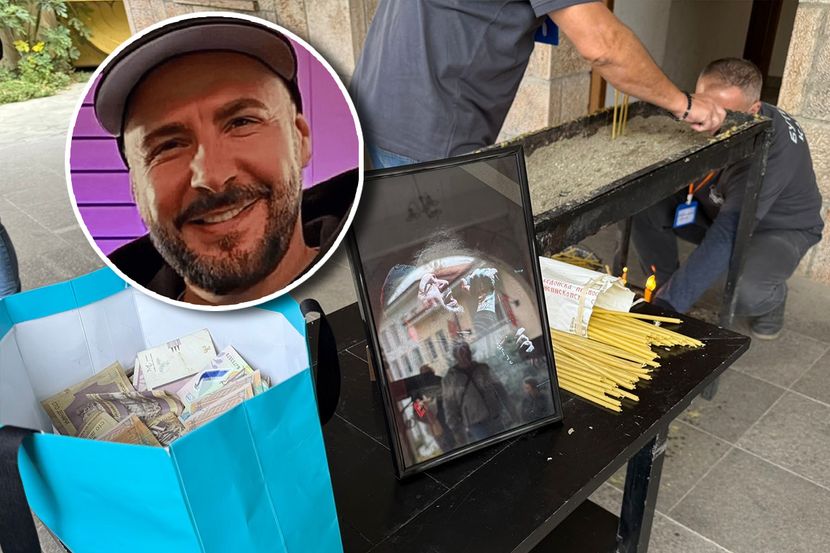 Pažnju je privukla i ogromna kesa ispred crkve, koja je skoro puna para, a koja je verovatno za pomoć porodici stradalog.