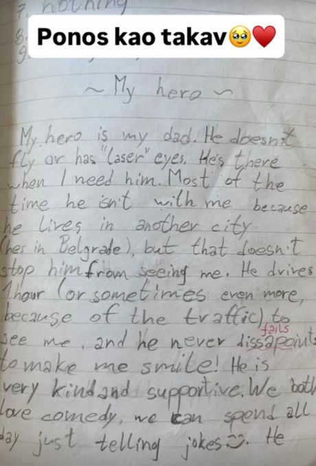 Tema zadatka bila je "Moj heroj" a devojčica je napisala ovaj sastav: