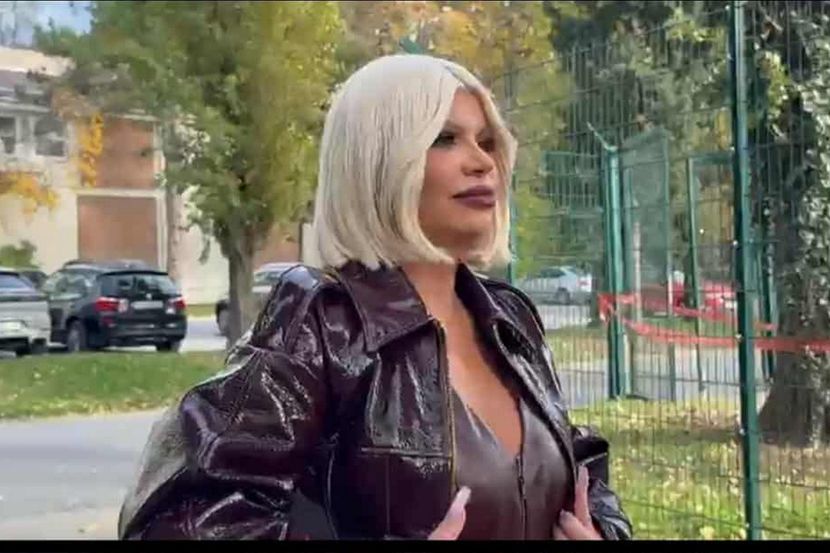 Pevačica je imala atraktivan stajling te je iskombinovala jaknicu , čizmice i bermude u istoj boji.