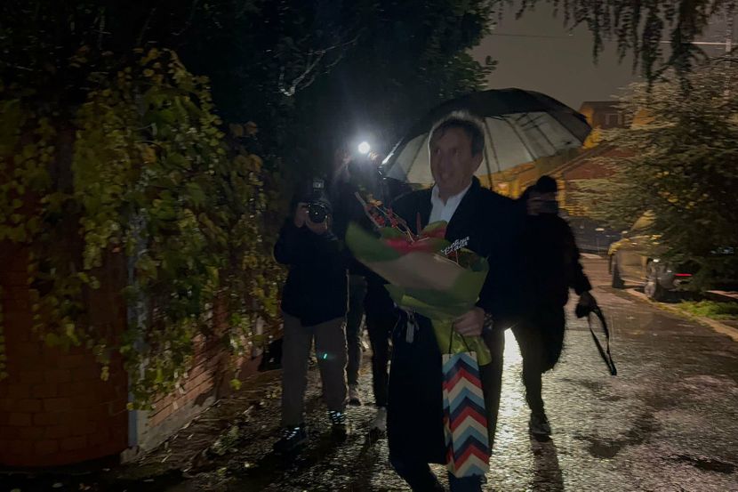 Žika Jakšić stigao na krsnu slavu Živojinovića: Voditelj elegantan u kaputu, u rukama ogroman buket