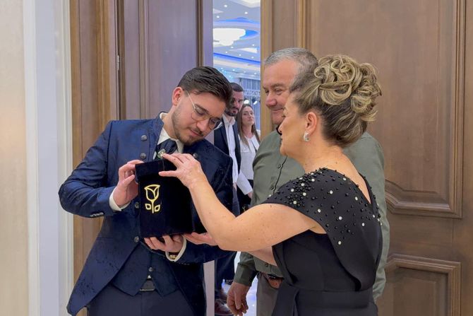 Harmonikaš Borko Radivojević danas proslavlja sinu punoletstvo. Članovi porodice prvi su stiglu u salu u Požarevcu, gde se održava slavlje, a među najbližima su i Borkovi roditelji.
