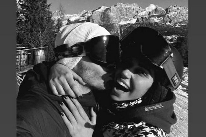 Novopečeni par je napravio selfi dok se skijaju na planini, a glumac je ljubio svoju devojku koja se iskreno i slatko smeškala.
