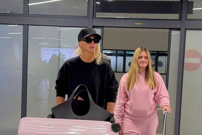 Pop zvezda je u večernjim satima stigla na aerodrom Nikola Teska, sa ćerkama Atinom i Nikom.