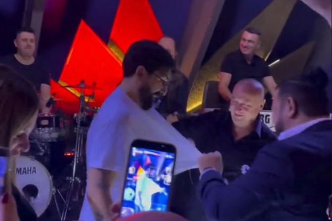 Ognjen nije ispuštao čašu iz ruku, dok je u jednom momentu đuskao sa folkerom Radišom Trajkovićem Đanijem, što su usnimile njegove koleginice sa Pinka.