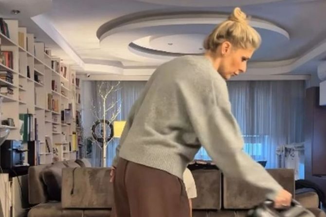 Kroz spontani snimak, Kristina je nenametljivo otkrila detalje porodičnog kutka dok je usisavala. Najviše pažnje privlači prostrana dnevna soba – centralno mesto porodičnog života. Otvoren koncept povezuje boravak sa trpezarijom i kuhinjom, stvarajući veliki prostor.