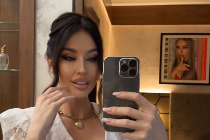 Ono što je vidljivo na snimku jeste ogroman bračni krevet, dve njene slike na zidu, zidovi u zlatnim nijansama, ogroman plakar, kao i staklena vitrina sa raznim detaljima među kojima su u parfemi.