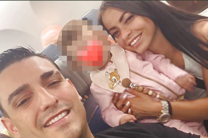 Njih dvoje su bili nasmejani i čini se da im je ovo putovanje došlo u pravom trenutku dok je ćerkicu Srnu držala Kaća. Mala Srna je bila obučena u roze kompletićč