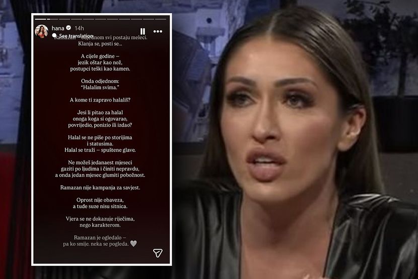 - Ramazan, odjednom svi postaju meleci. Klanja se, posti. A cele godine jezik oštar kao nož, postupci teški kao kamen. Onda odjednom "Halalim svima". A kome ti zapravo haliliš' Jesi li pitao za halal onoga koga si ogovarao, povredio, ponizio ili izdao? Halal se ne piše po storijima i statusima. halal se traži - spuštene glave. Ne možeš jedanaest meseci gaziti po ljudima i činiti nepravdu, a onda jedan mesec glumiti obožnost. Ramazan nije kampanja za savest. Oprost nije obaveza a tuđe suze nisu sitnica. Vera se ne dokazuje rečima nego karakterom. Ramazan je ogledalo pa ko sme neka se pogleda - napisala je Hadžiavdagić.