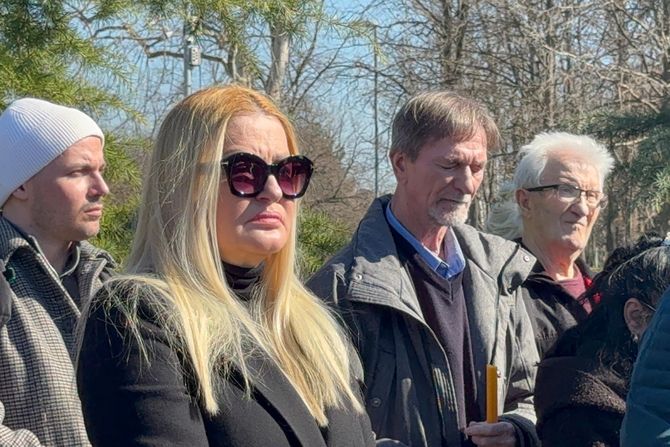 Sanja je tužna stajala, a svoje lice je prekrila naočarama za sunce.