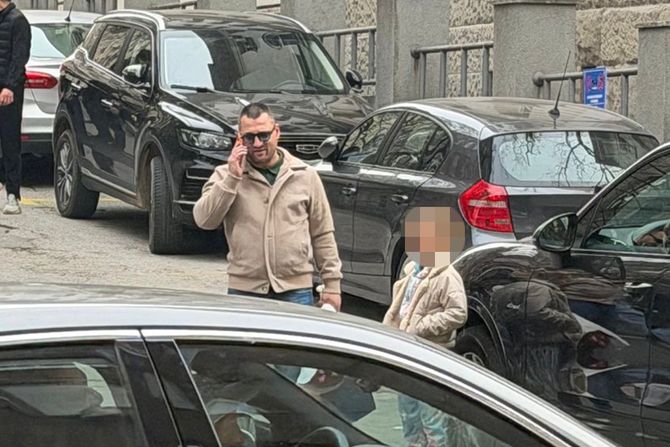 Pevač Deni Boneštaj (37) stigao je ispred GAK Narodni front kako bi izveo suprugu Ines Vasiljević i njihovo peto, a njegovo šesto dete.