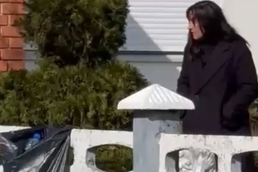 Branka je na sebi imala crni kaput, i sve vreme je brisala suze sa lica dok je stajala ispred kuće.