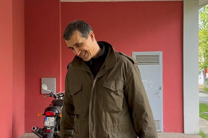 Marka smo uslikali u trenerci i jakni, kako se vraća u porodični stan.