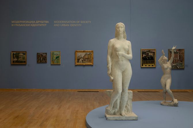 Do kraja aprila na programu će biti javna vođenja kroz sve aktuelne izložbe u zgradi Muzeja savremene umetnosti na Ušću: „Prekretnice ka modernosti: Umetnost društva 1900-1945“, „Klara Siprel i Pol Strand: Slike drugog sveta“ i „Muzikalnost i skulpturalnost - Olga Jevrić“.