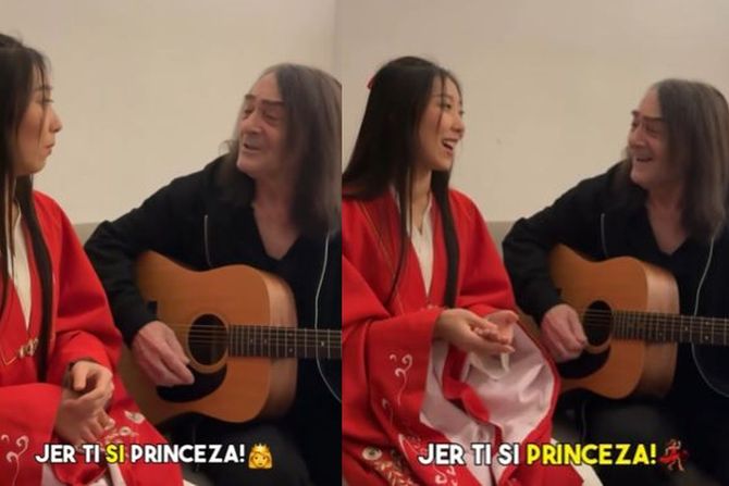 "Hajde ti mene nauči, ja ću da probam", rekla je Kineskinja, a onda je Topić zasvirao i zapevao "Princezu" zajedno sa njom.