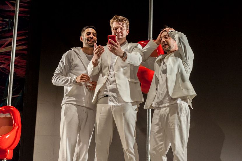 U predstavi igraju Uroš Jakovljević, Dejan Dedić i Ivan Mihailović.Reditelj je Ivan Vuković, dramaturškinja Jelena Mijović, kostimografkinja Dragica Laušević, scenografkinja Ema Stojković Jerinić, kompozitor Miroslav Radulović.