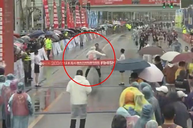 Incident, koji je zabeležen kamerama i munjevito se proširio društvenim mrežama, dogodio se tokom Vandžou maratona. Na snimku se vidi vodeći trkač, Šeng Sjueli, kako u punom sprintu hita ka cilju (vreme oko 2:23:52). U tom trenutku, sudija u kabanici iznenada istrčava ispred njega, širi ruke i bukvalno ga zaustavlja u punom naletu.