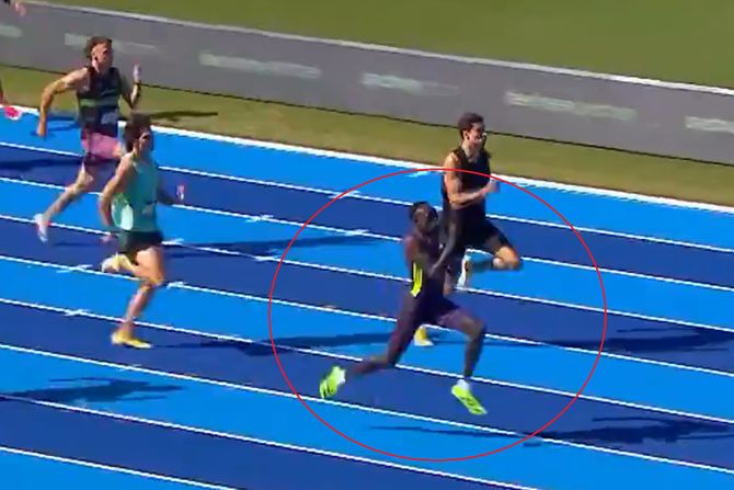 - Ako preskočite sve do kraja, do Arčera Mekhjua, on trči 20.3, a to je čovek koji je pre oko dve nedelje prvi put probio granicu od 21 sekunde, trčao je 20.8. A sad se pojavi i trči pola sekunde brže. Trka jeste stvarna, ali vreme nije stvarno.