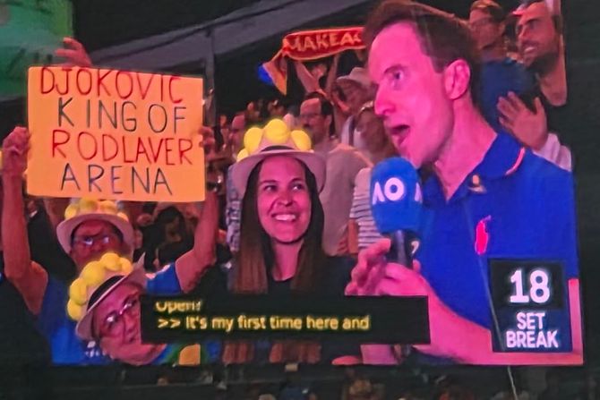 Na tribinama "Rod Lejver Arene" našlo se baš dosta Srba, što se moglo videti po trobojkama koje su bile raspoređene, ali se u jednom momentu u kadru pojavila i simpatična grupa navijača iz egzotične zemlje, a koja je navijala za Đokovića.