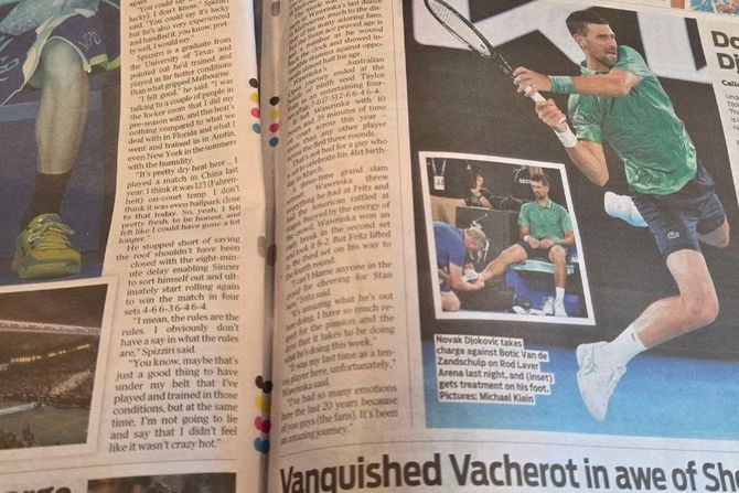"The Age" kao i gorepomenuta novina su konstatovale da je Italijan imao velike sreće sa pravilom u vezi vrućine i da ga je spuštanje krova i zbog pauze i zbog hladovine totalno spasilo protiv Eliota Spicirija.