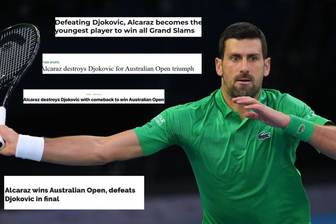 Naravno, poraz Novaka u finalu Australijan opena su jedva dočekali, a mnogi su ga stavili i kao glavnu vest na svojim sportskim portalima. Tako portal Telegrafi u naslovu navodi "Alkaraz uništio Đokovića preokretom i osvojio Australijan open".