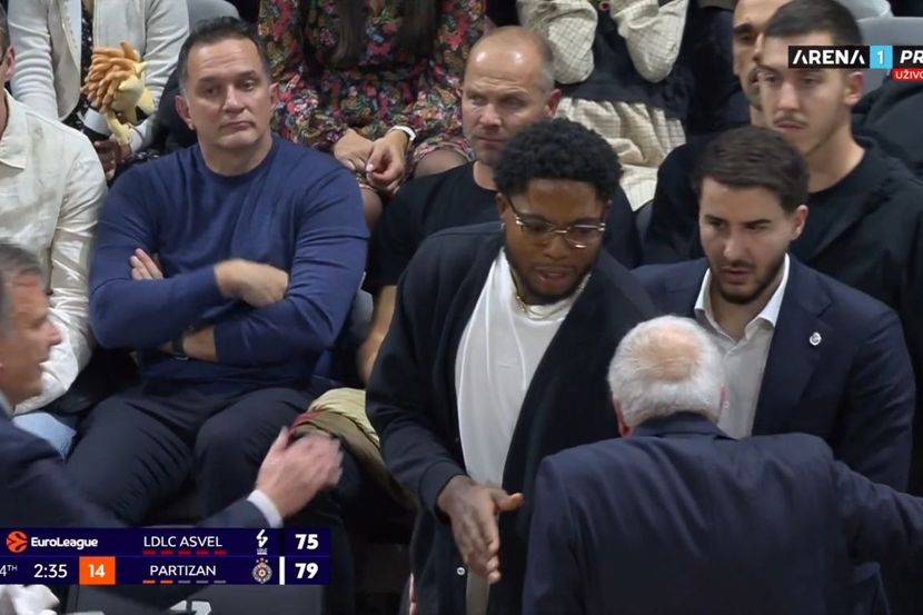 Košarkaši Partizanaporaženi su večeras u gostima od Asvela rezultatom 88:87, a nesvakidašnja scena dogodila se pred sam kraj meča kada je Tajrik Džons "skočio" sa klupe.