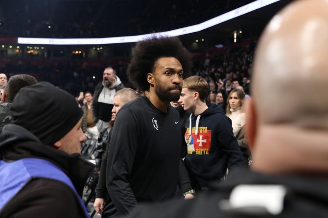 Tada smo usnimili reakciju Džabarija Parkera, koji je, uprkos dolasku svog trenera iz Barselone Đoana Penjaroje, meč presedeo na klupu.