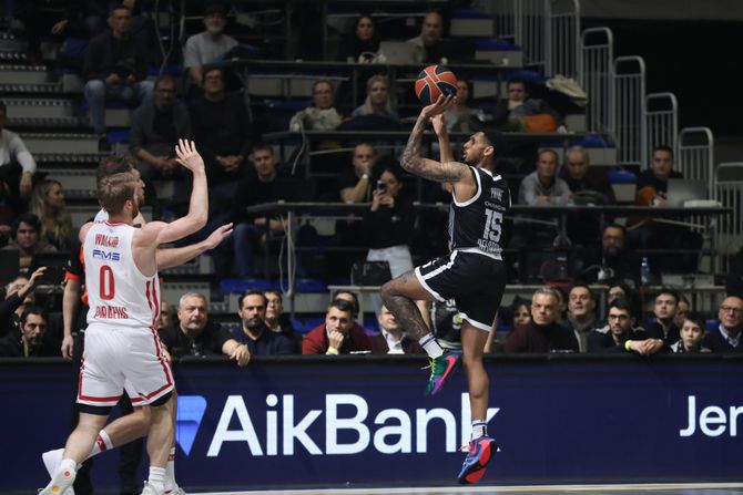 Vašington pogađa oba bacanja. Dobra odbrana crno-belih, ali Bonga ne pogađa trojku iz kornera. Probao je Dorsi za tri, ali ispravlja to Vezenkov. Probao je Džekiri, ali blokira ga Milutinov, a onda ni Vokap na drugoj strani ne pogađa. Pogodio je Vanja prvu trojku na meču. Promašuje Kalates, a onda i Vašington, međutim promašuje i on. Izlazi lopta Furnijeu iz koša, ali ostaje lopta za Olimpijakos, međutim, ništa od koša.