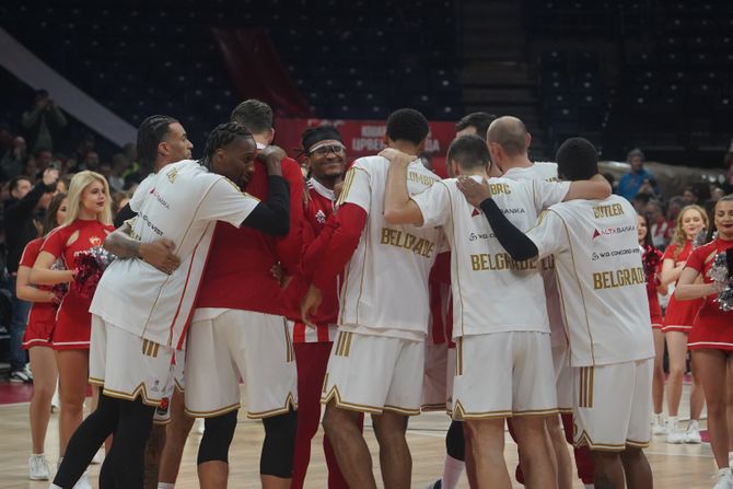 Batler je ostao u igri jedan na jedan, pogađa torjku preko reko i Džered Batler. Avramović hoće na silu, ne pogađa. Trči Zvezda u kontru i evo poena Dobrića, polaganje kapitena crveno-belih. Loš pas Muse, hvata Bejkon ne pogađa. Odličan pas i zakucavanje Šemija Odželeja.