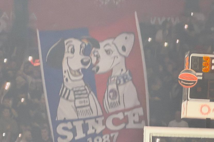 Delije su na svojoj tribini razvile zastavu sa Dalmatincima, a time su želeli da prozovu Grobare zbog nedavnog događaja kada je navodno u telefonu jednog od vođa Torcide Split pronađen spisak poruka sa navijačima Partizana.