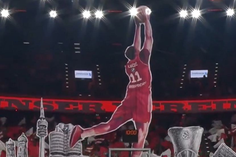 Na tribinama se pojavila njegova silueta u pozi zakucavanja, a prava poezija bio je snimak Evrolige. Naime, na početku meča videli smo i poljubac Nikole Milutinova i Stefana Jovića, košarkaša timova iz dva tabora, pre kadra koreografije sa Lučićem.