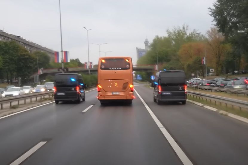 Nakon kraće pauze u hotelu na periferiji prestonice, ekipa je autobusom krenula ka Bačkoj Topoli, uz jaku policijsku pratnju i rotacije koje su osigurale slobodan prolaz.