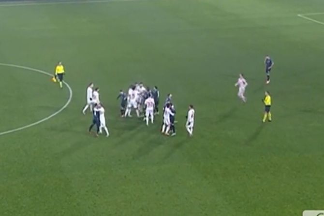 Naime, pred sam kraj prvog poluvremena došlo je do incidenta na centru terena. Ru je faulirao Bruna Duartea, a koristio je i ruke prilikom starta. Fudbaler Crvene zvdze je odmah ušao u duel sa fudbaleorm TSC-a, a onda su se i ostali priključili.