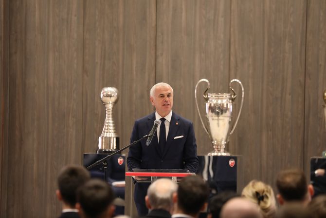 Istovremeno ovaj jubilej je i vera i obećanje da će Crvena zvezda u decenijama koje dolaze ostati simbol Srbije, Beograda, ponosa, tradicije i nepobedivog duha, naveo je Terzić.