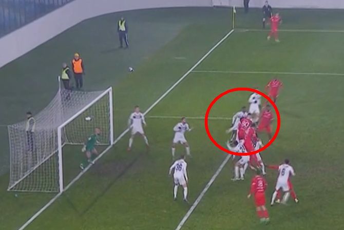 Milanović je nadskočio Nikolu Simića i zatresao preciznim udarcem Marka Miloševića, koji u ovoj situaciji nije mogao ništa više da učini.