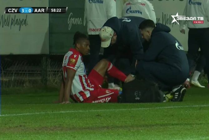 Detalj koji je zabrinuo navijače Zvezde: Tebo Učena izašao iz igre i žali se na probleme sa skočnim zglobom