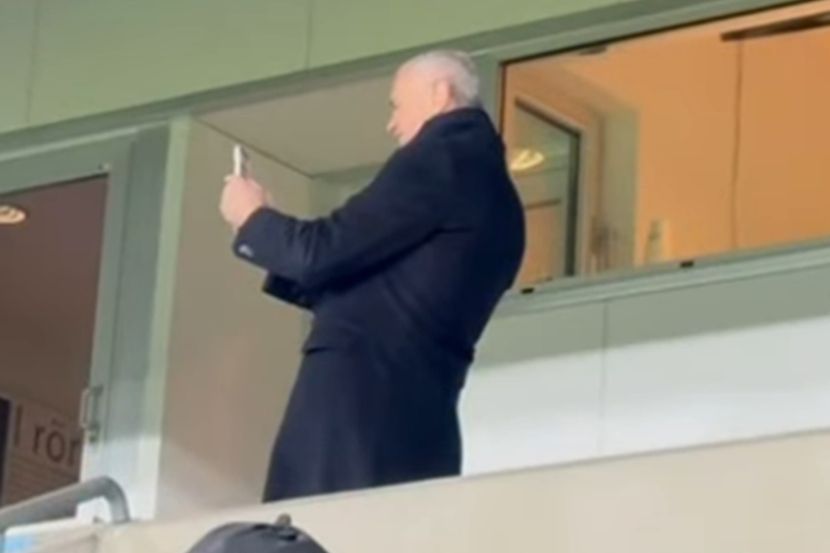 Pratio je dešavanja posle utakmice sa osmehom na licu, a zatim i izvadio telefon i snimao dešavanja ispred Delija, gde su došli i svi igrači.