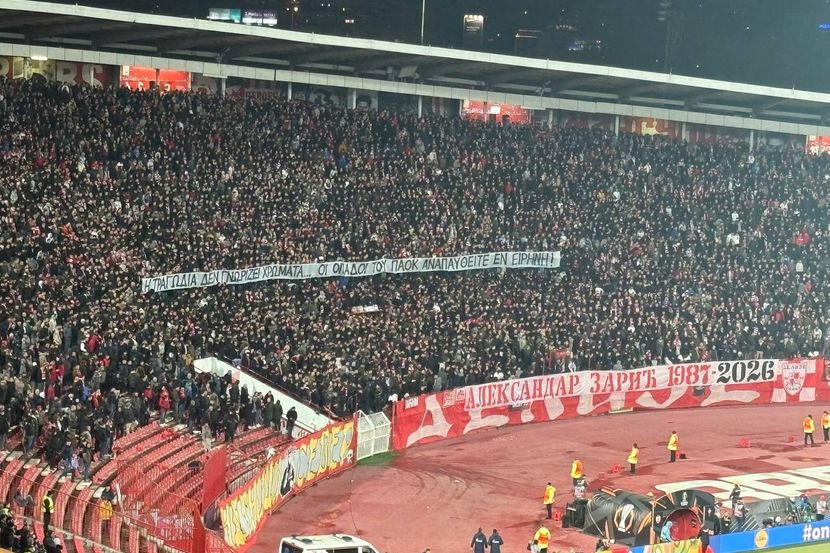 - Tragedija ne poznaje boje, navijači PAOK-a počivajte u miru - razvili su navijači Crvene zvezde na grčkom jeziku.