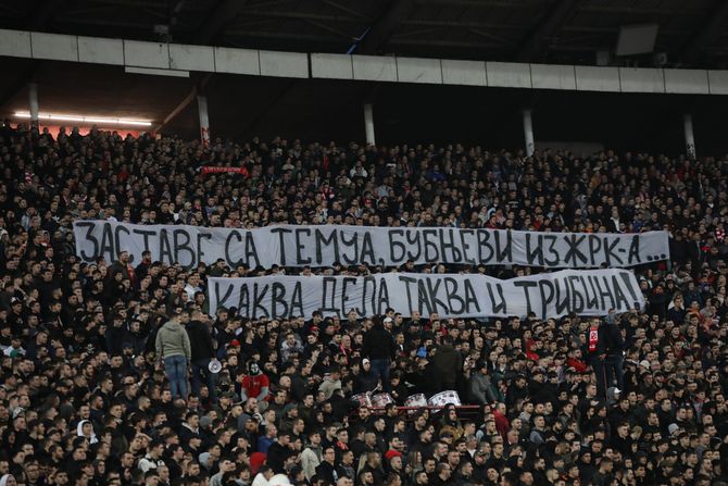 - Zastave sa Temua, bunjevi iz ŽRK-a. Kakva dela, takva i tribina. Pridružujem se krivičnom gonjenu i ističem ivmovinsko pravni zahtev koji ću naknadno opredeliti - stoji na transparentu Delija na severnoj tribini.