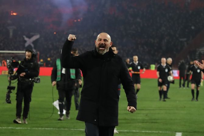Pogledajte kako je Stanković slavio sa igračima, a pred najvatrenijim navijačima Crvene zvezde na stadionu "Rajko Mitić":