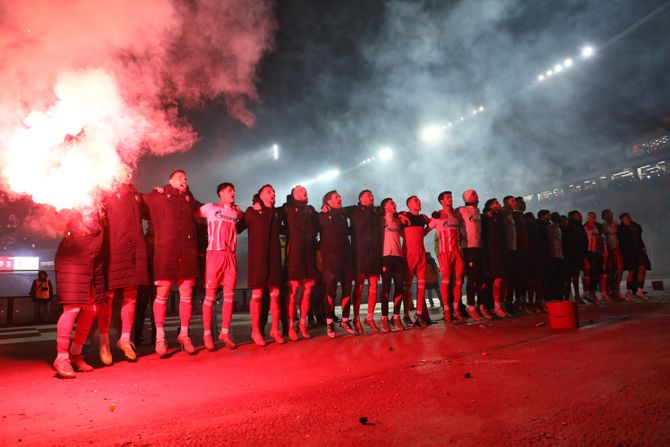 Pogledajte kako su fudbaleri Zvezde slavili sa Delijama posle večitog derbija: Baklja i pesma za Olimpijakos