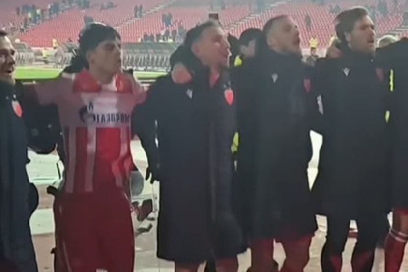 Zajedno zagrljeni pevali su poznate navijačke pesme, a u jednom momentu se tu pojavila i baklja sa kojom su igrači Zvezde bili obasjani ispod severne tribine stadiona.