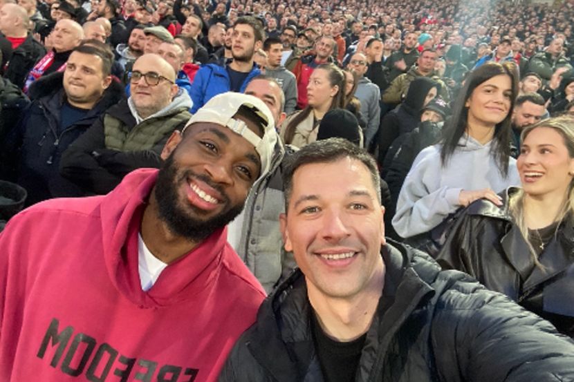 A na severnoj tribini zajedno sa najvatrenijim navijačima bila su dva veoma dobro poznata imena. Jedno je naš dosta dobro poznati glumac, Viktor Savić, a odmah pored njega i prvotimac košarkaške sekcije Crvene zvezde, Kodi Miler Mekintajer.