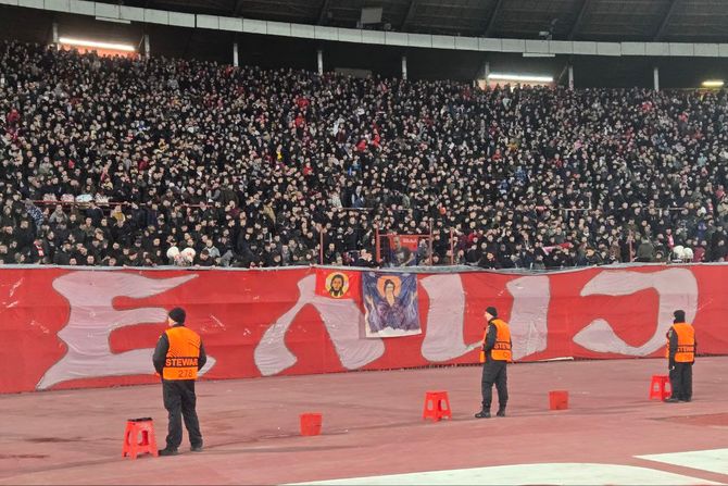 Pred početak utakmice su na severnoj tribini istakli i jednu ikonu, a radi se o Svetom Simeonu.