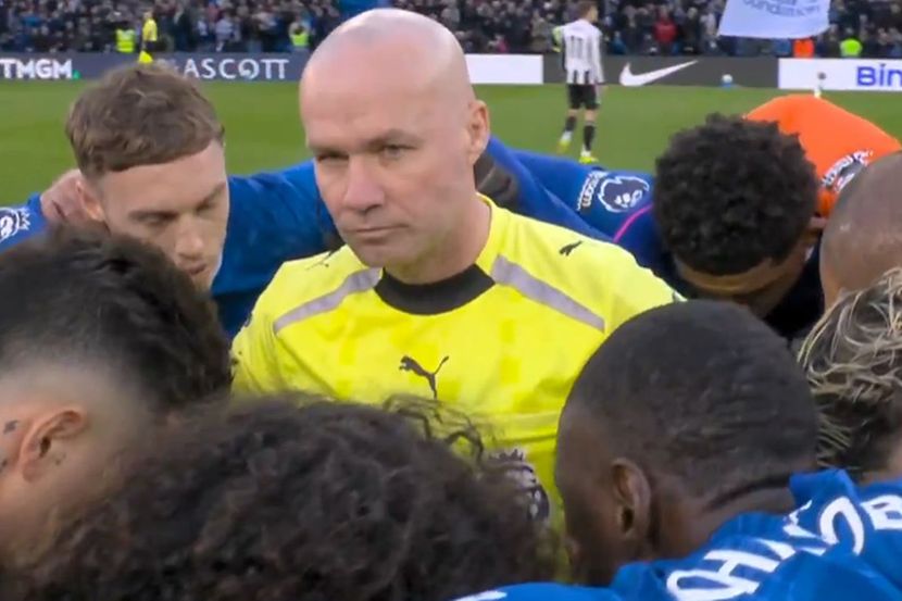 Fudbaleri Čelsija postali su viralni na društvenim mrežama nakon jedne od najbizarnijih scena viđenih ove sezone u Premijer ligi. Naime, igrači londonskog kluba su tokom tradicionalnog timskog sastanka na terenu bukvalno "zarobili" glavnog sudiju Pola Tirnija!