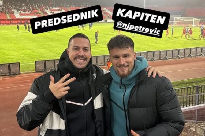 - Hapsimo Radnički u Kragujevcu! Šalim se naravno, ćutimo i fini smo, veliki pozdrav za Crvene đavole - napisao je Baka Prase uz natpise "predsednik" iznad sebe i "kapiten" iznad Njegoša Petrovića.