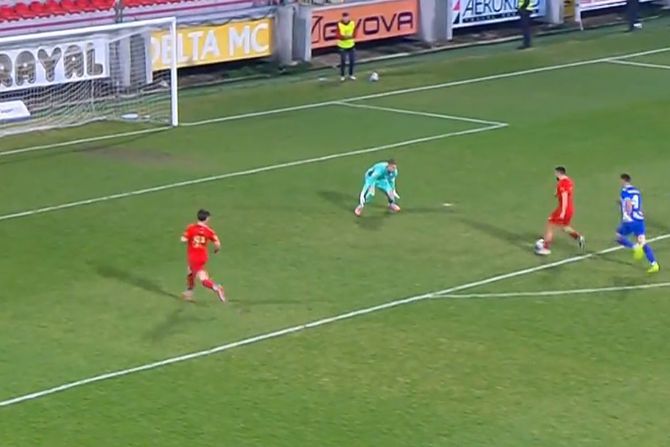 OFK Beograd je prethodno izveo dva kornera, oba puta su bili blizu gola, da bi Lutovac i Taškovski pobegli odbrani gostujućeg tima i imali su ispred sebe samo golmana.